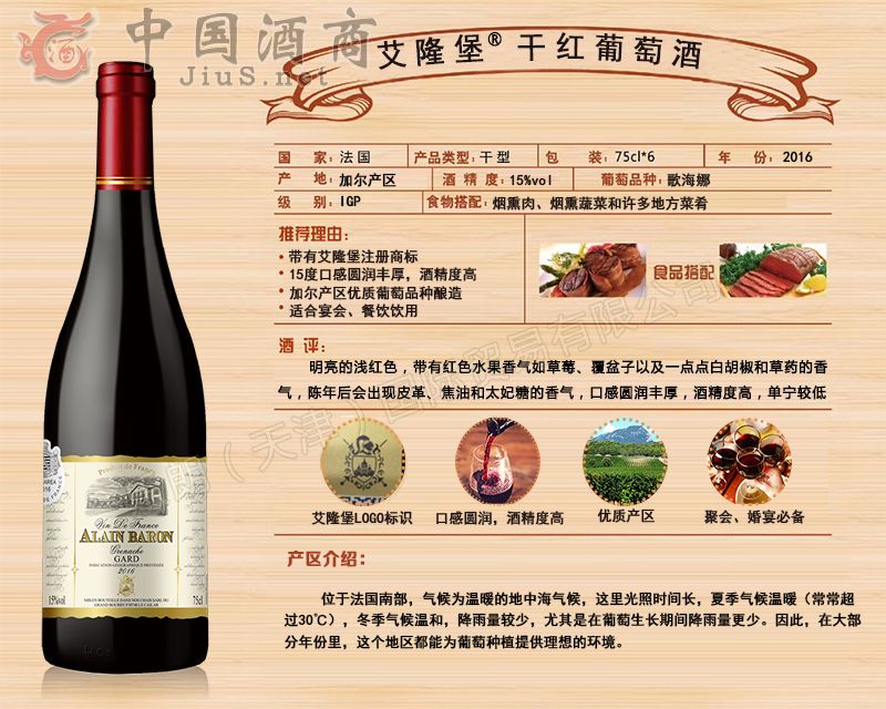 | 產(chǎn)品名稱 | 艾隆堡®干紅葡萄酒 | 產(chǎn)品類別 | 葡萄酒招商 |